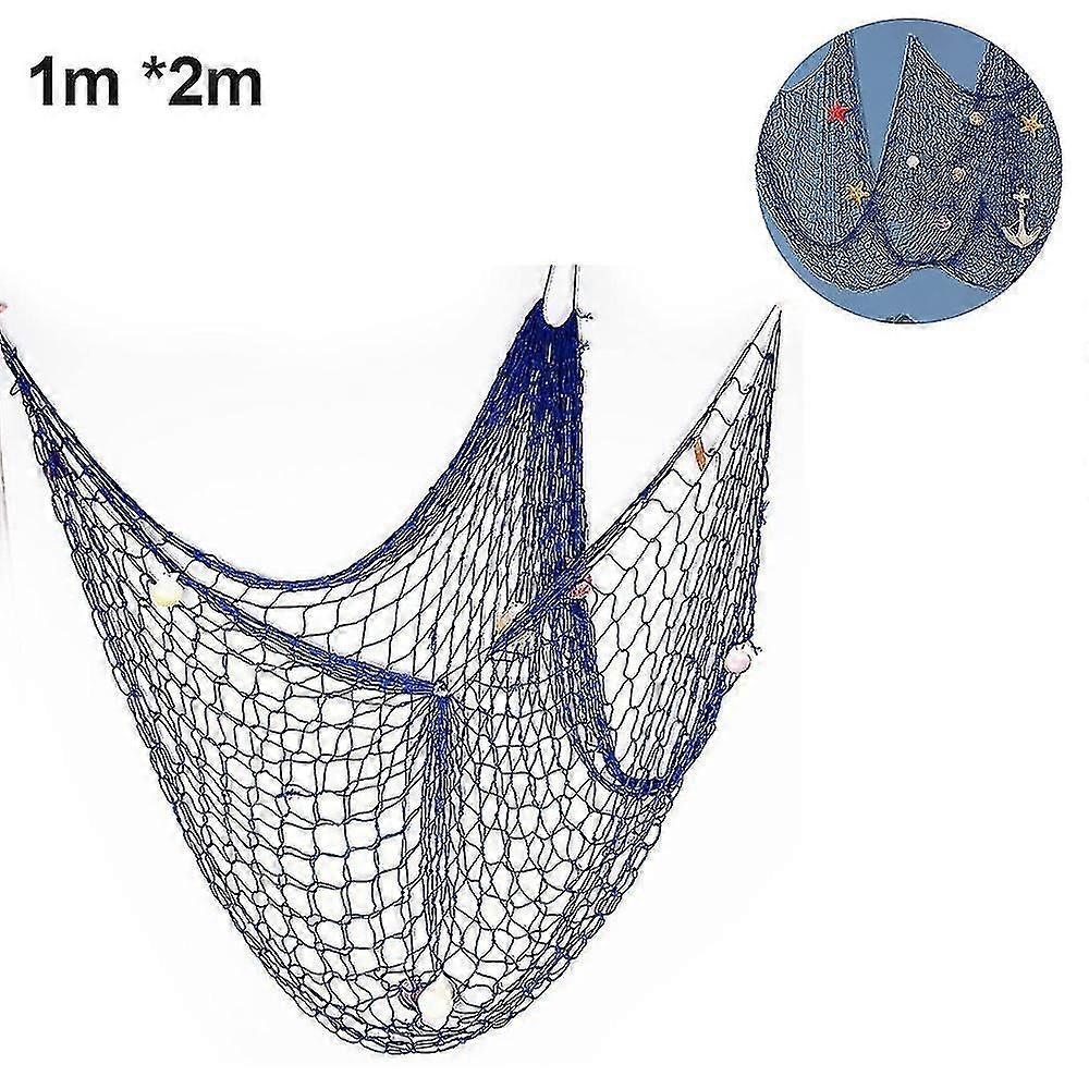 Rustic Nautical Decorative Fishing Net Wall Hangings Decor With Stars, Lifebuoy And Anchor Ornaments