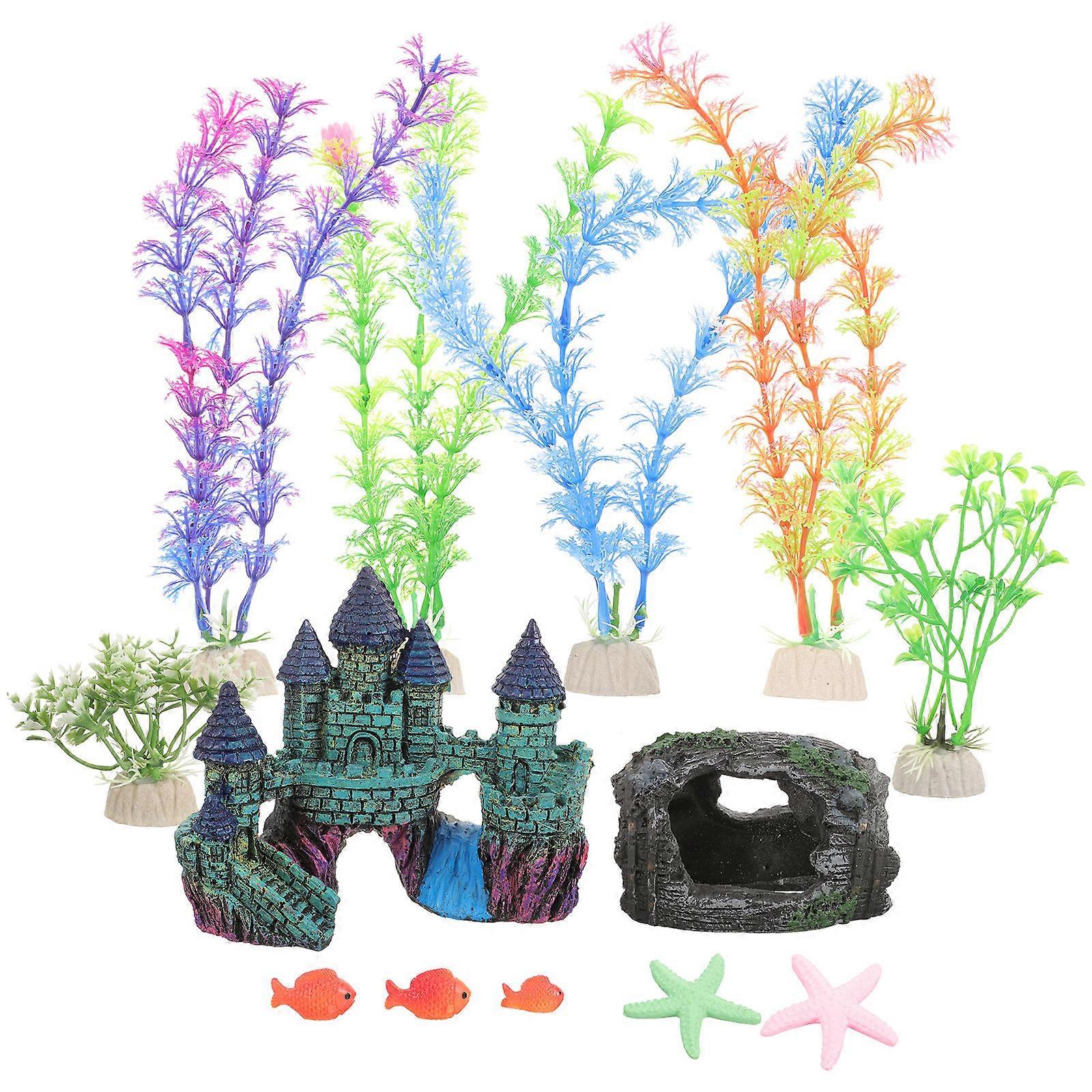 Vivid Aquarium Decor Fish Tank Accessories Plastic And Resin Castle Barrel 15Pcs