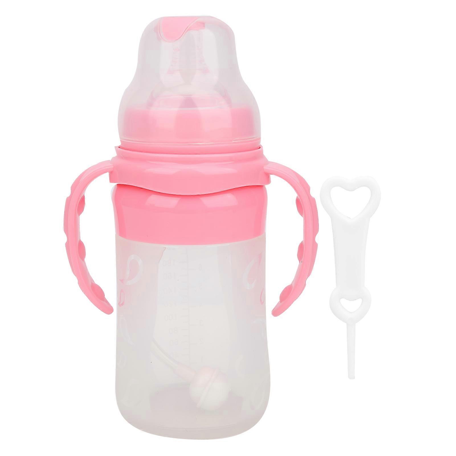 Baby Feeding Silicone Bottle WideCaliber Newborn Nursing Milk Breast Bottle with Handle(Pink )