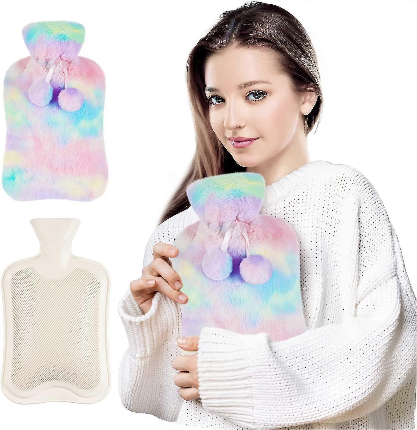 Hot Water Bottle With Cover, Fluffy 2 Liter Hot Water Bag, Large Bed Bottle