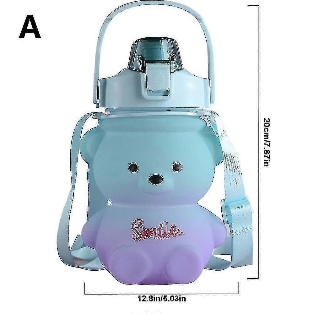 Bottle With Bear Shape 1100ml Cute Bear Cup With Straw & Strap Water Bottles Portable Comfortable Fashionable For Women Girls