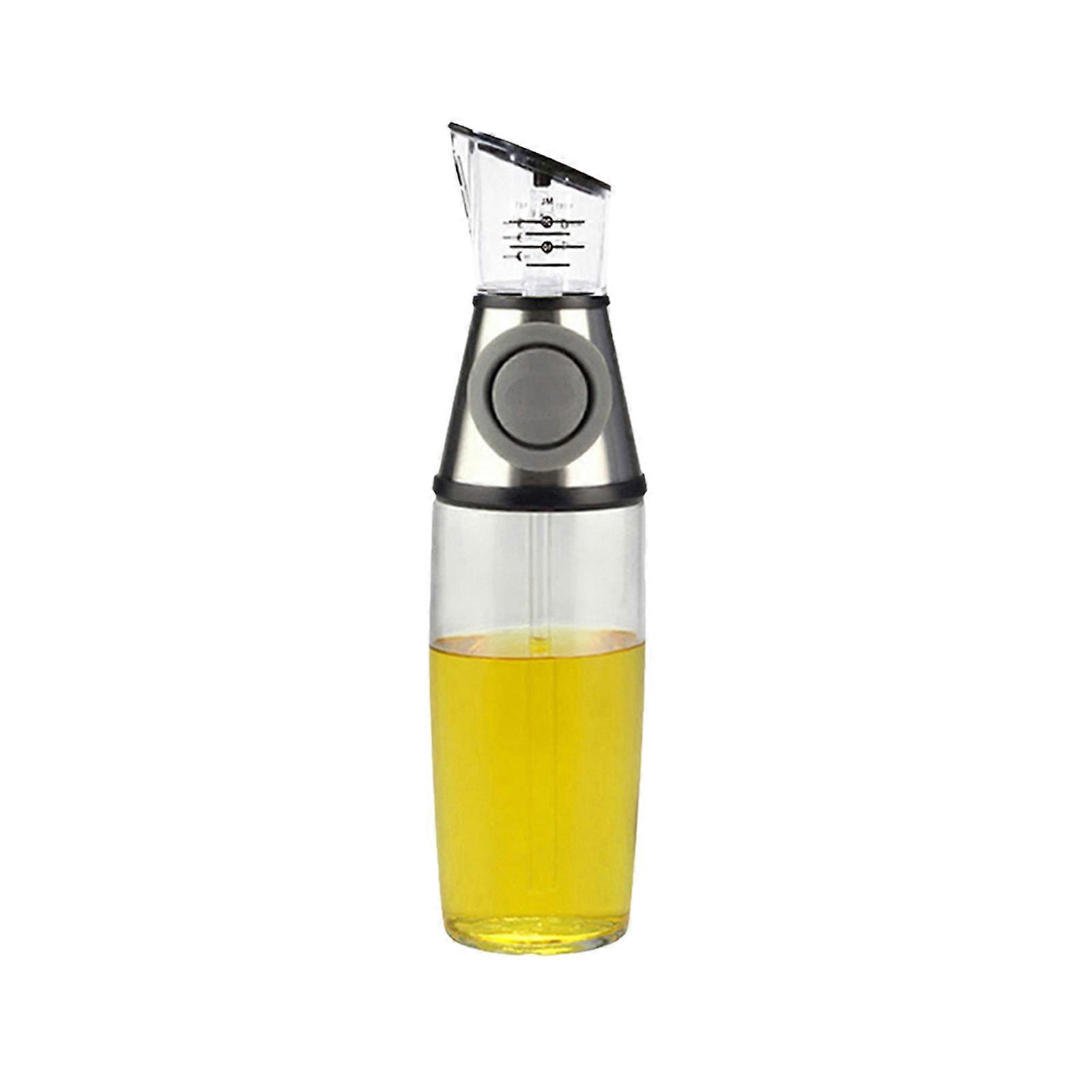 250/500ml Oil Dispenser Bottle with Measuring Transparent Wide Opening Press Button Food Grade Oil Storage Leakproof No Back-flow Cooking Vinegar Cont
