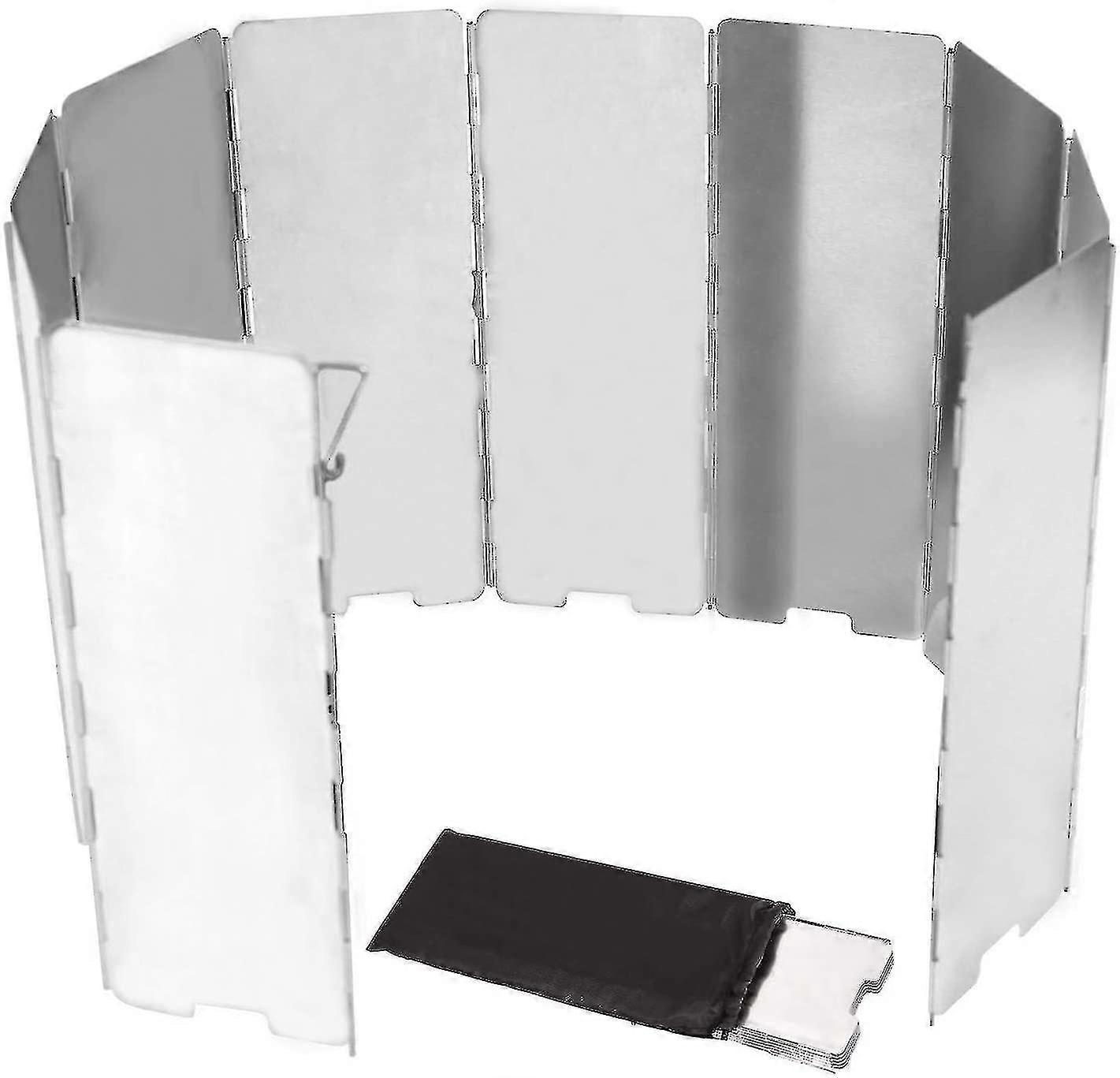 Lightweight Folding Camping Stove Windscreen - 10 Plates Aluminum Wind Shield for Butane Burner Stove with Carrying Handle