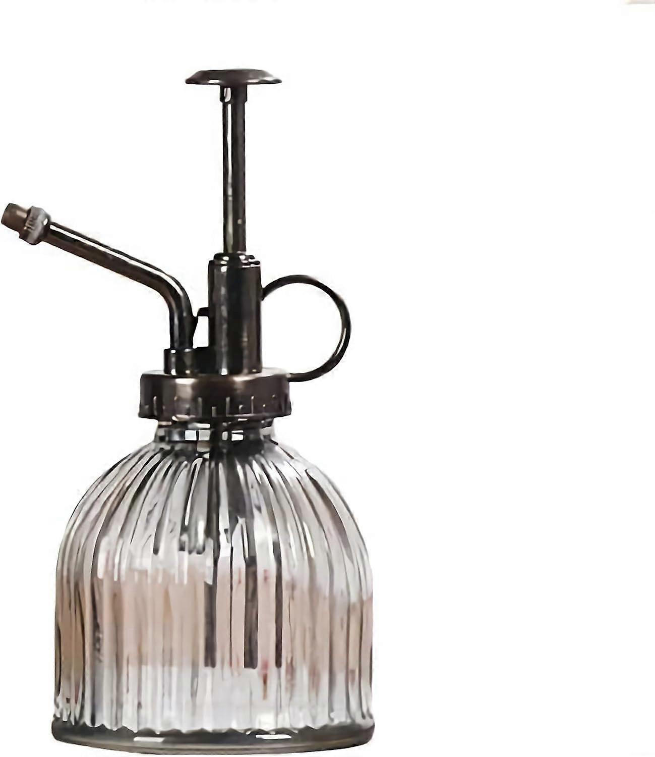 Glass Plant Mister Spray Bottle, 6.3 Inches Tall Vintage Style Bronze Plastic Top Pump One Hand Watering Can