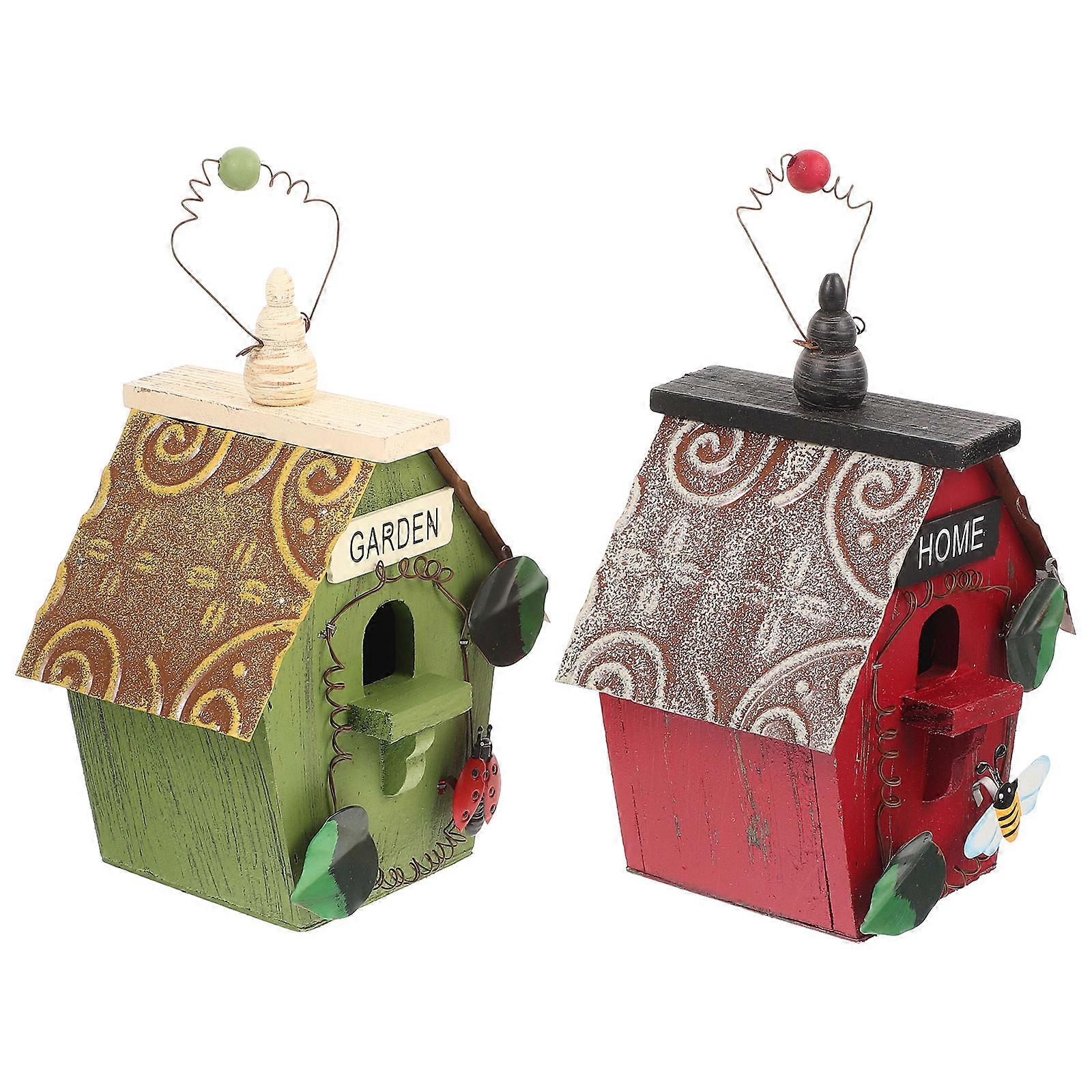 Bird House Ornaments Wooden Bird House Garden Nesting Box 2Pcs