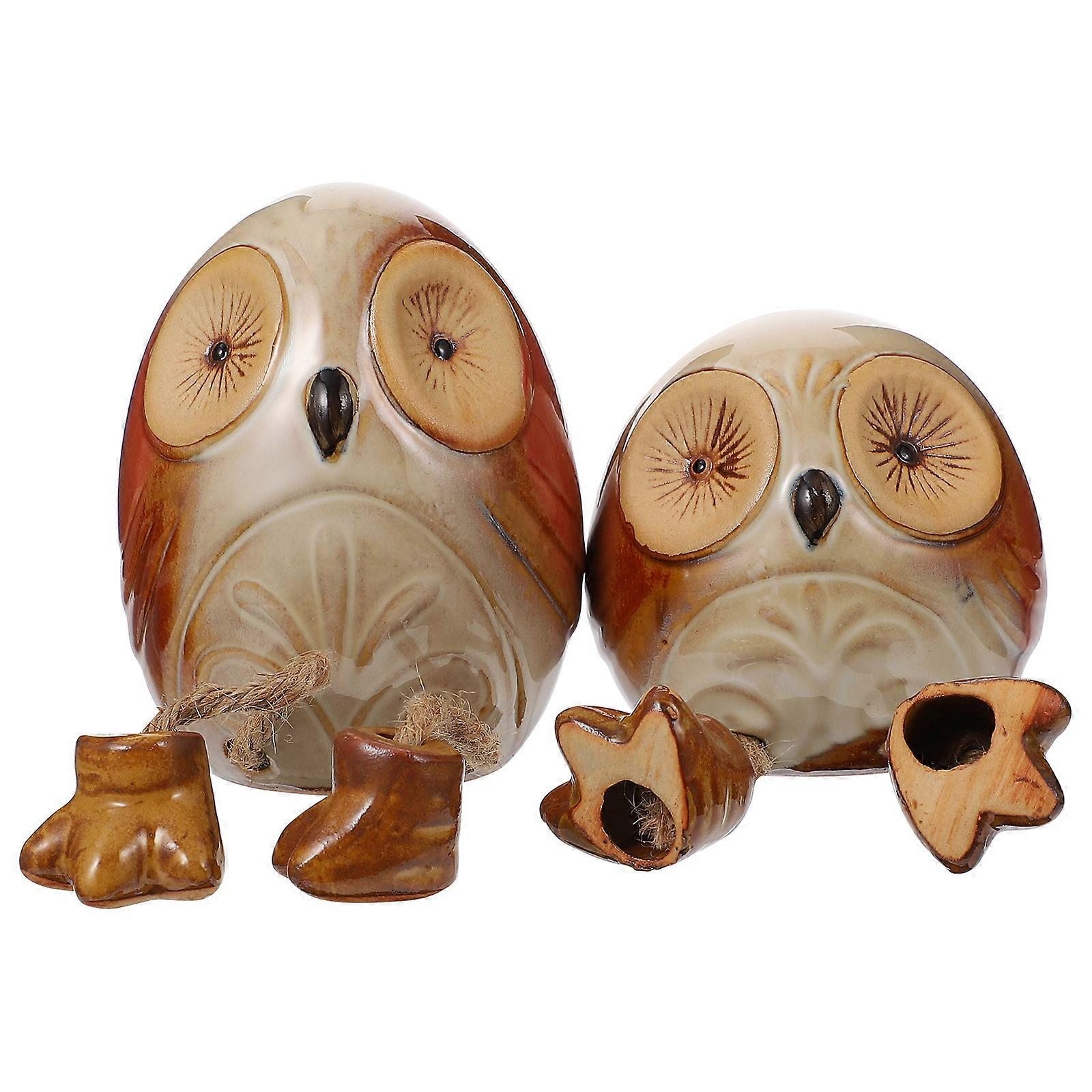 Ceramic Owl Figurine Ornaments 2Pcs Perfect For Home Bedroom Desk Decoration Cozy Atmosphere Creation Hanging Feet Design