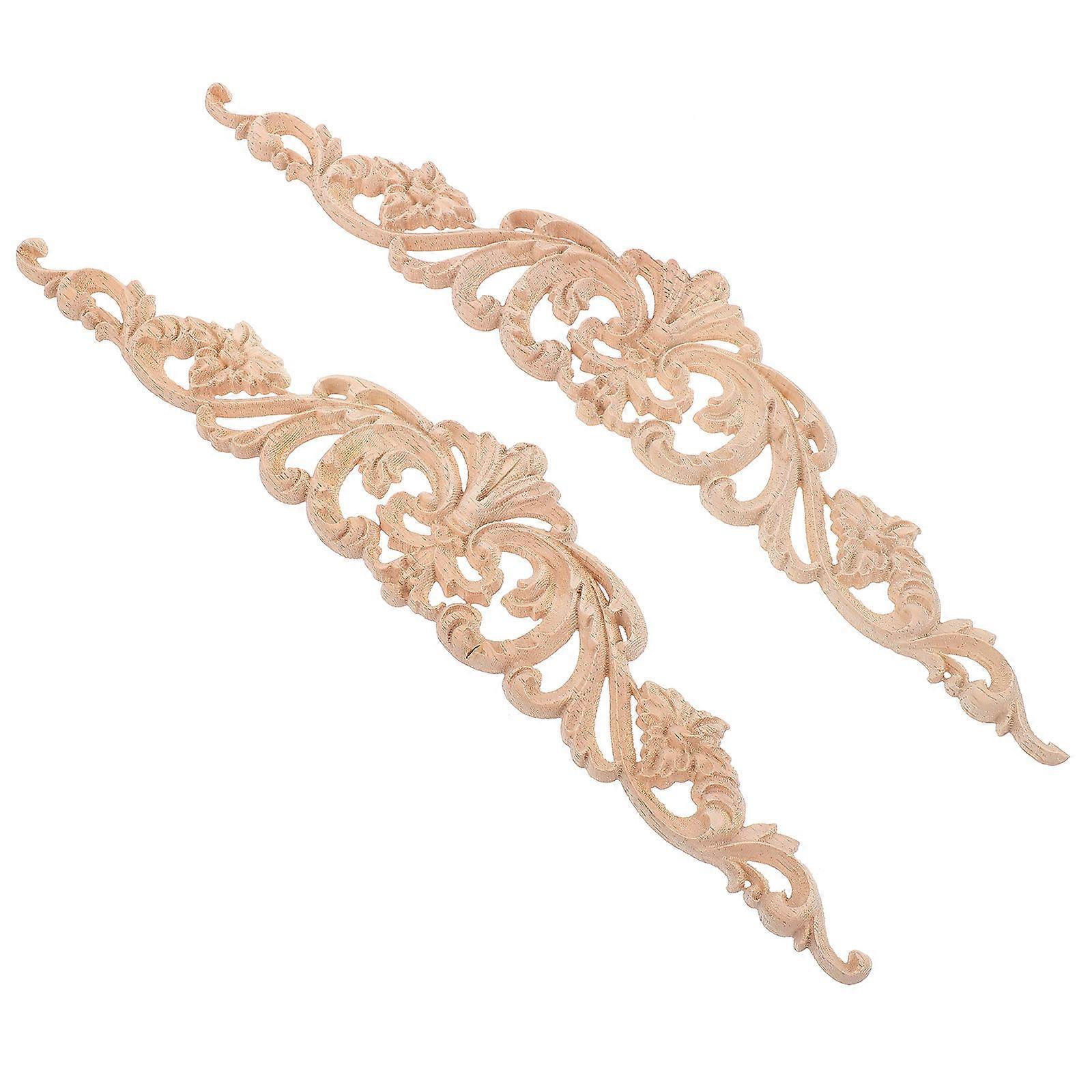 Decorative Wood Appliques Natural Wood Decor Furniture Carved Onlay Home Decoration Khaki 30X6CM Light and Compact 2Pcs