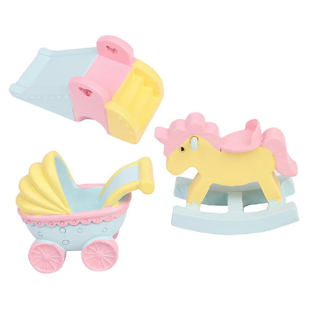 Wooden Horse Resin Desktop Ornament for Decoration Use 3Pcs Office Table Decorations