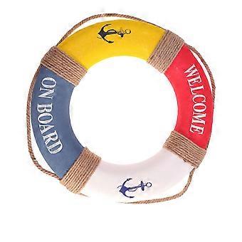 زخرفة شنقة بحرية معلقة عوامة النجاة الديكور نمط البحر الأبيض المتوسط للمقهى الأحمر والأصفر 50 سم دائرة ديكور المنزل 1 حزمة