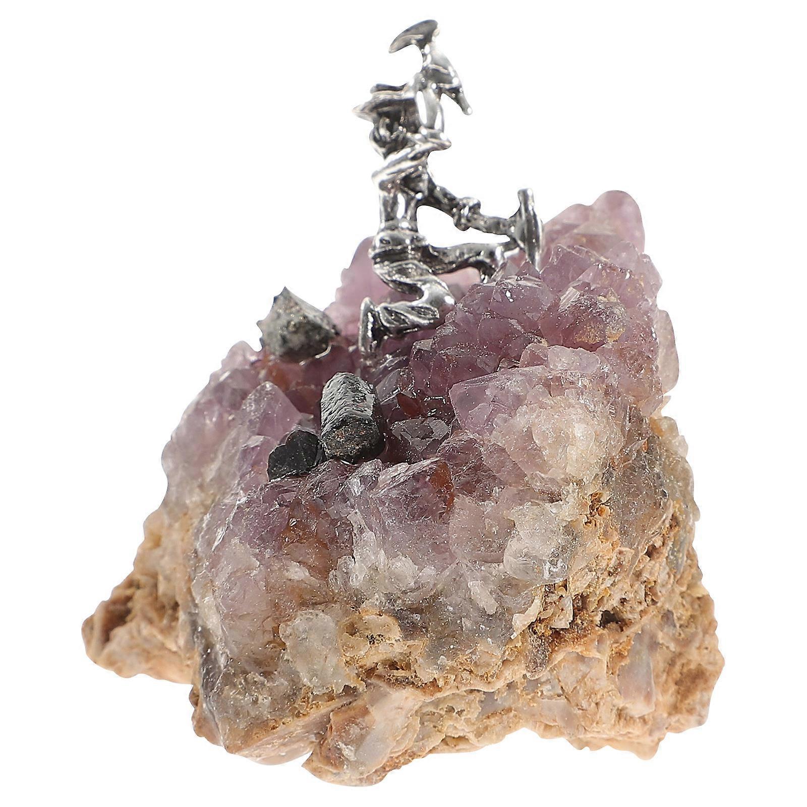 Natural Amethyst Cluster Sculpture Miner Ornament for Home Decor 1Pcs