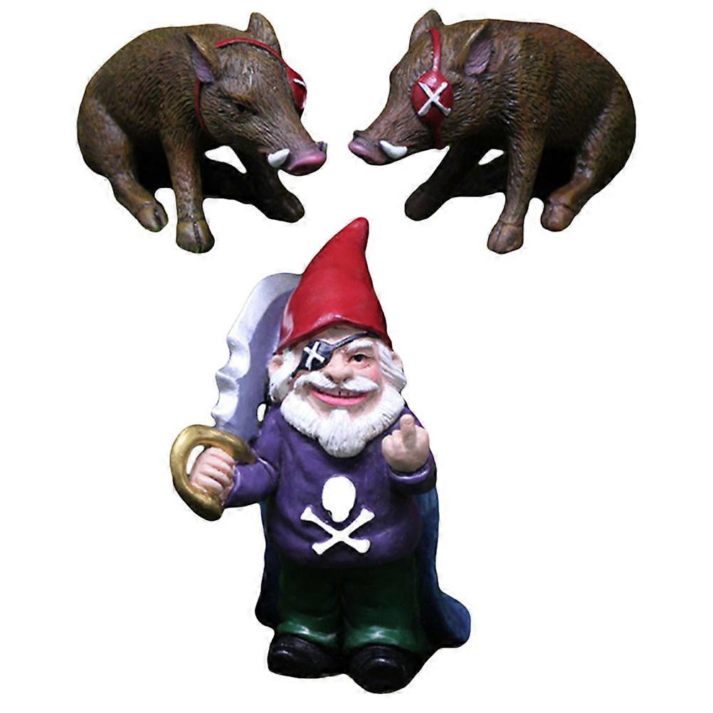 Decorative Figurine Garden Gnome Statue Pig Shape Ornament For Home Decor 1Set