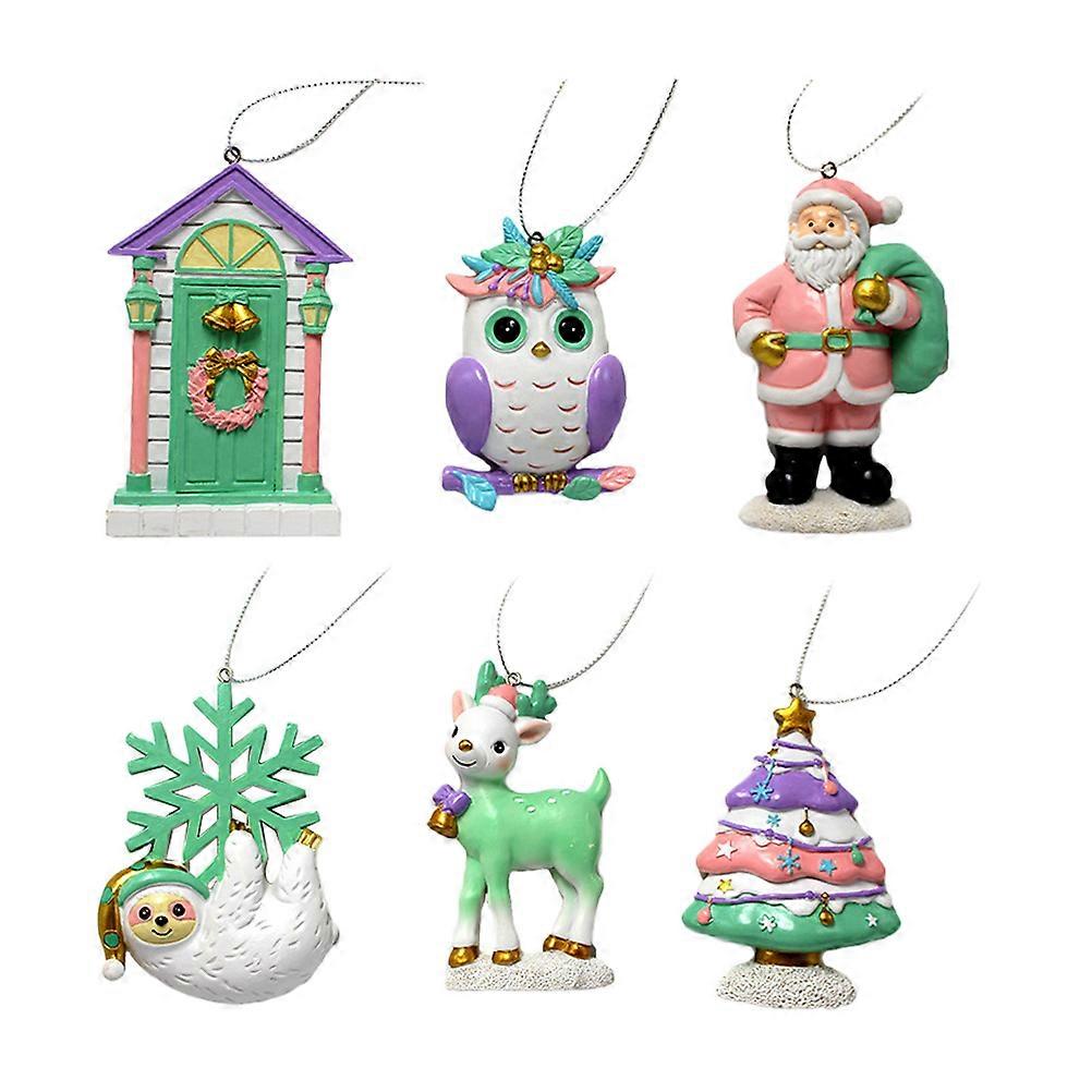 Decorative Hanging Ornaments Christmas Pendants Resin Square Pendant Design Home Decoration 6Pcs