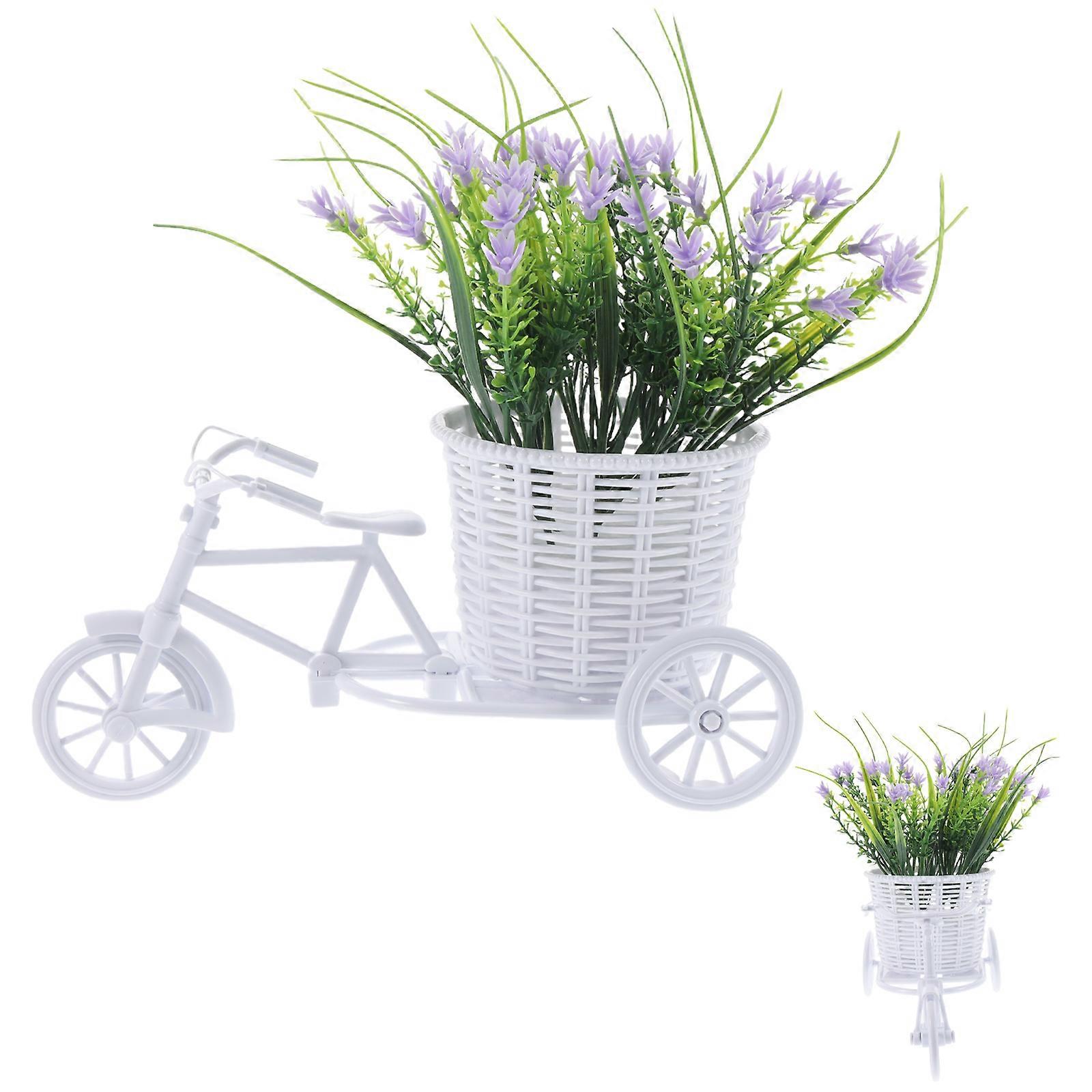 Violet Artificial Flower with Bicycle Basket for Home Decor and Wedding Centerpiece, Plastic
