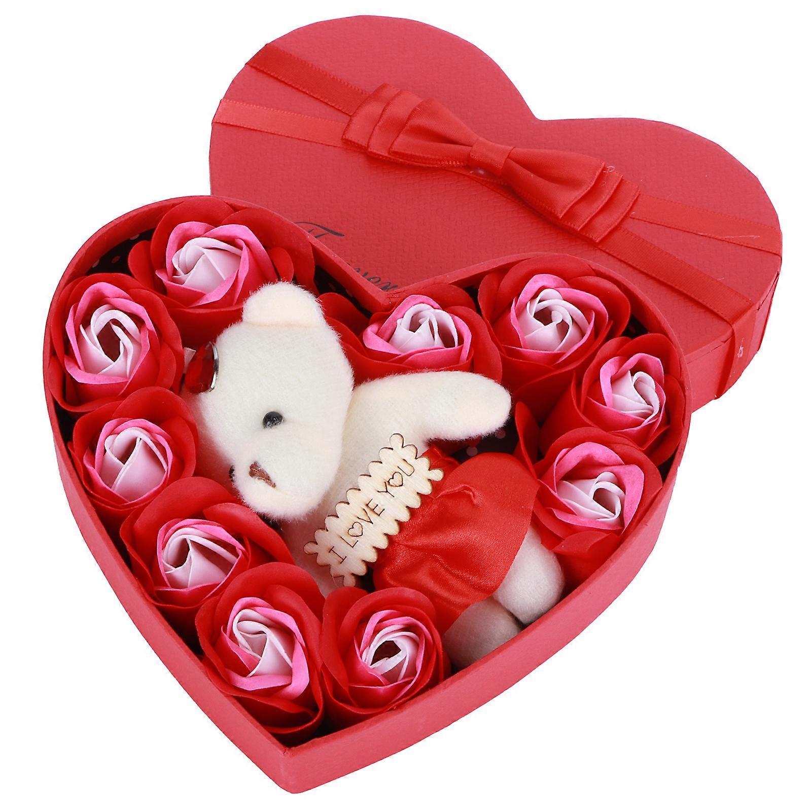 1、Innovative soap flower bouquets, exquisite in shape and will not fade or wither. 2、Delicate workmanship, beautifully packaged, it is an excellent gift for a lover, mother or friend. 3、Made of high quality soap material, high degree of simulation, delicate, distinctive and safe to use. 4、Suitable for Mother's Day, Thanksgiving Day, Christmas Day, Wedding anniversary, Birthday, etc. 5、Can be used for bath soap rose petal, perfect for a quick hand wash or luxurious bath. Item Type: Soap Flower Material: Soap Color: As shown in the picture Box Size: Approx. 17x15x4cm / 6.7x5.9x1.6in Weight: Approx.120g~125g/4.2oz~4.4oz 1 x Gift Box(10pcs Soap Flower+1 x Toy Bear)