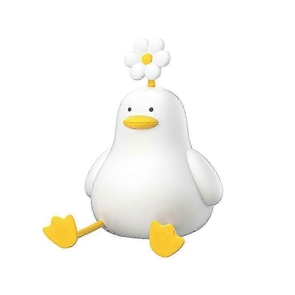 SAFE CHILDREN'S RECHARGEABLE NIGHT LIGHT: made of baby-safe silicone, 100% safe and kid-friendly skin-friendly silicone material, soft and comfortable to touch, you can knead it as much as you want.CUTE DECORATION: Little Flower Duck Lamp can be used as a cute decoration to adorn a warm home, or as a fun gift for kids or friends, bring them happiness and more security.MULTIPLE USES: shape of the flower duck night light with 30 minutes automatic to turn off the light is not only a cute night light but also can be used as a fun toy or cell phone stand. A cell phone holder with its own light is more protective of eyes.SOFT LIGHT AND EYE PROTECTION: Gently click on the Sitting Flower Duck Lamp to adjust three levels of light, warm and soft light to accompany your child into . A full charge can work continuously for 4-6 hours, easy to carry to any place.Helping kids get a full nights rest, which means Mom and Dad also get a restful night's sleep.Stylish and duck lights are Perfect birthday gifts, lucky Christmas gifts for and .cute bedroom decorations, kids favorite night lights.size: about 11 x 13 x 15cmMaterial: Silica gelcolour: WhitePackage Contents: 1 x Night lamp1 x USBOnly the above package content, other products are not included.Note: Light reflection and different displays may cause the color of the item in the picture a little different from the real thing. The measurement allowed error is +/- 1-3cm.