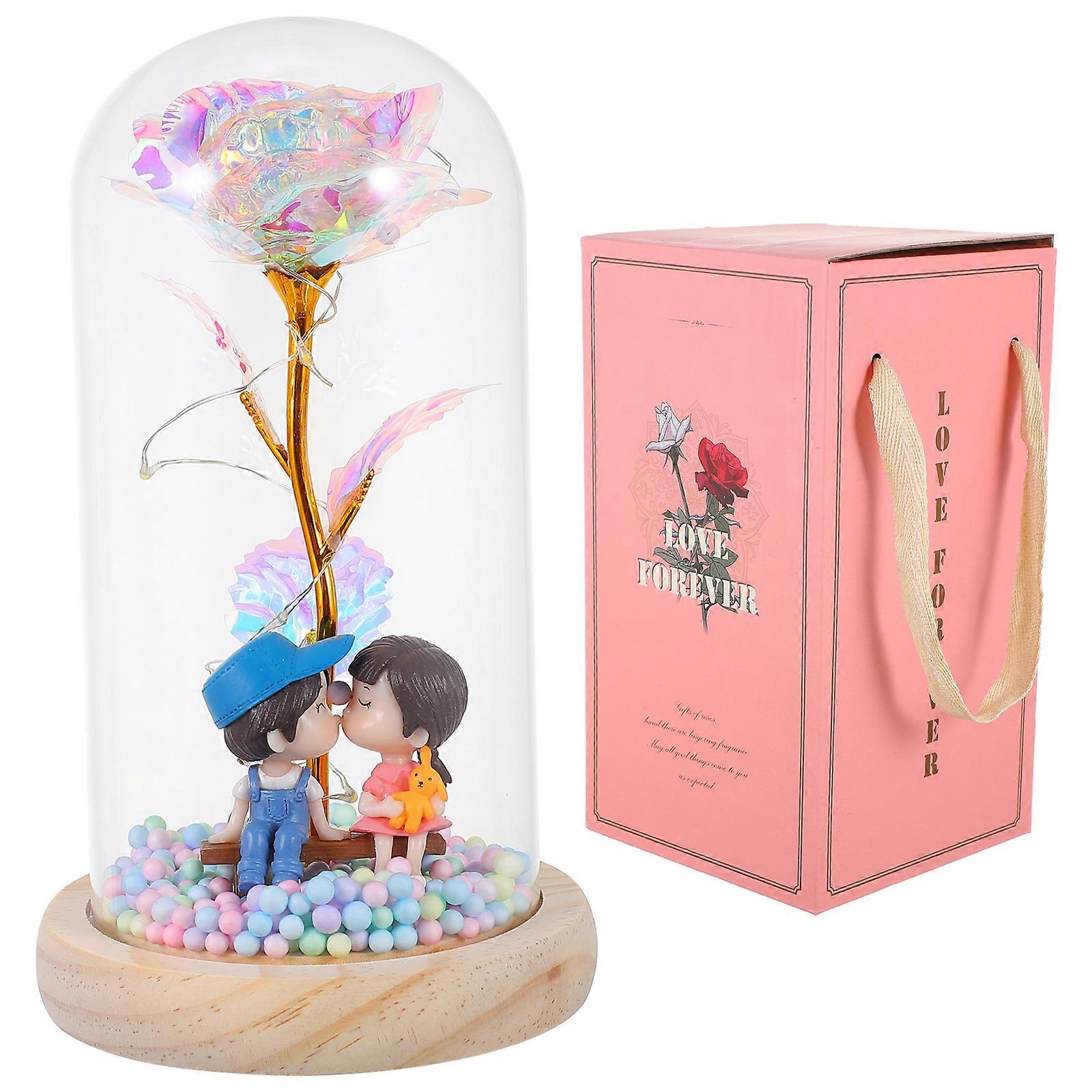 Preserved Flower Adorn Glowing Glass Cover Craft Ornament for Decoration 1Pcs