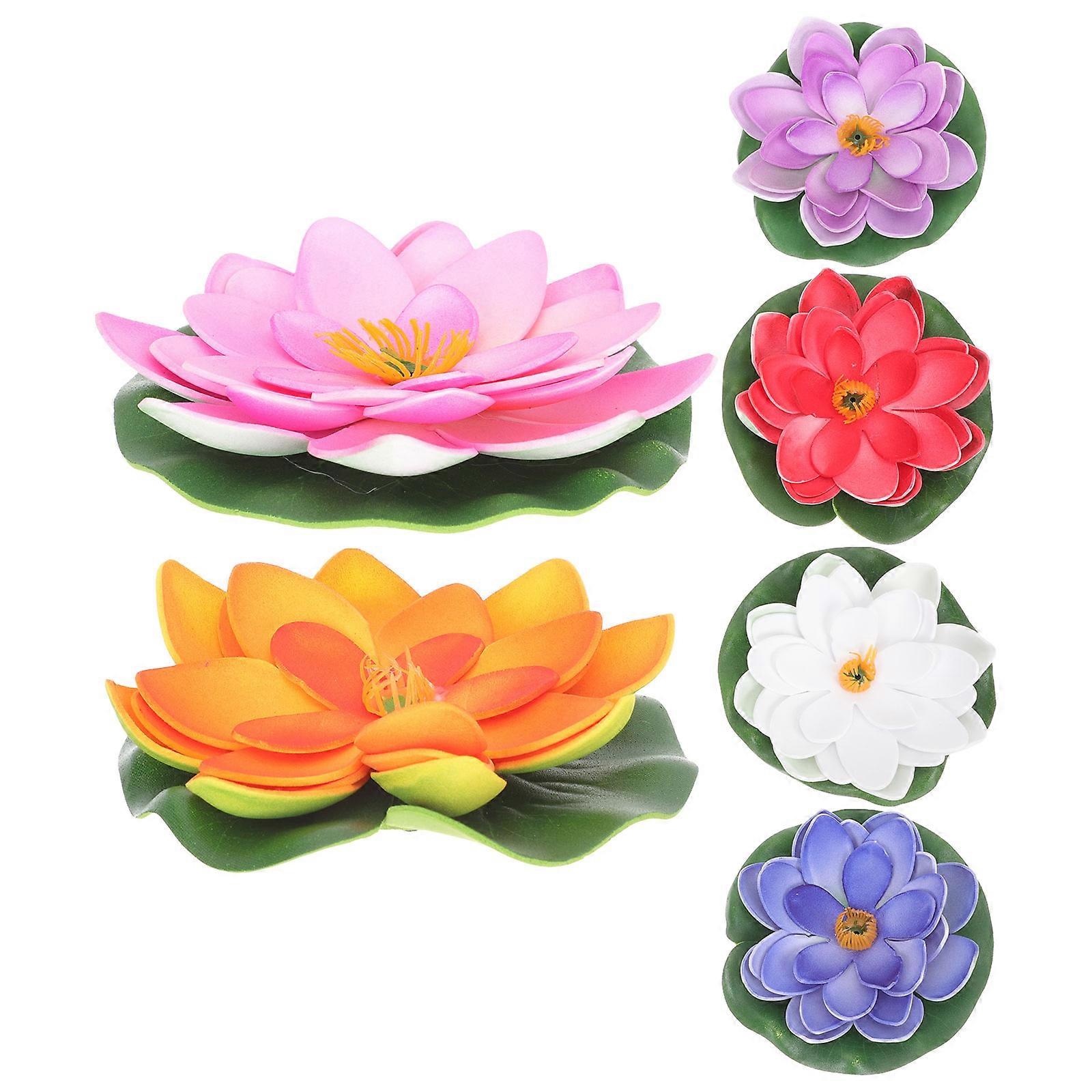 Artificial Lotus Flowers Simulated Lotus-Flowers Fish Tank Decorations White with Red 6Pcs
