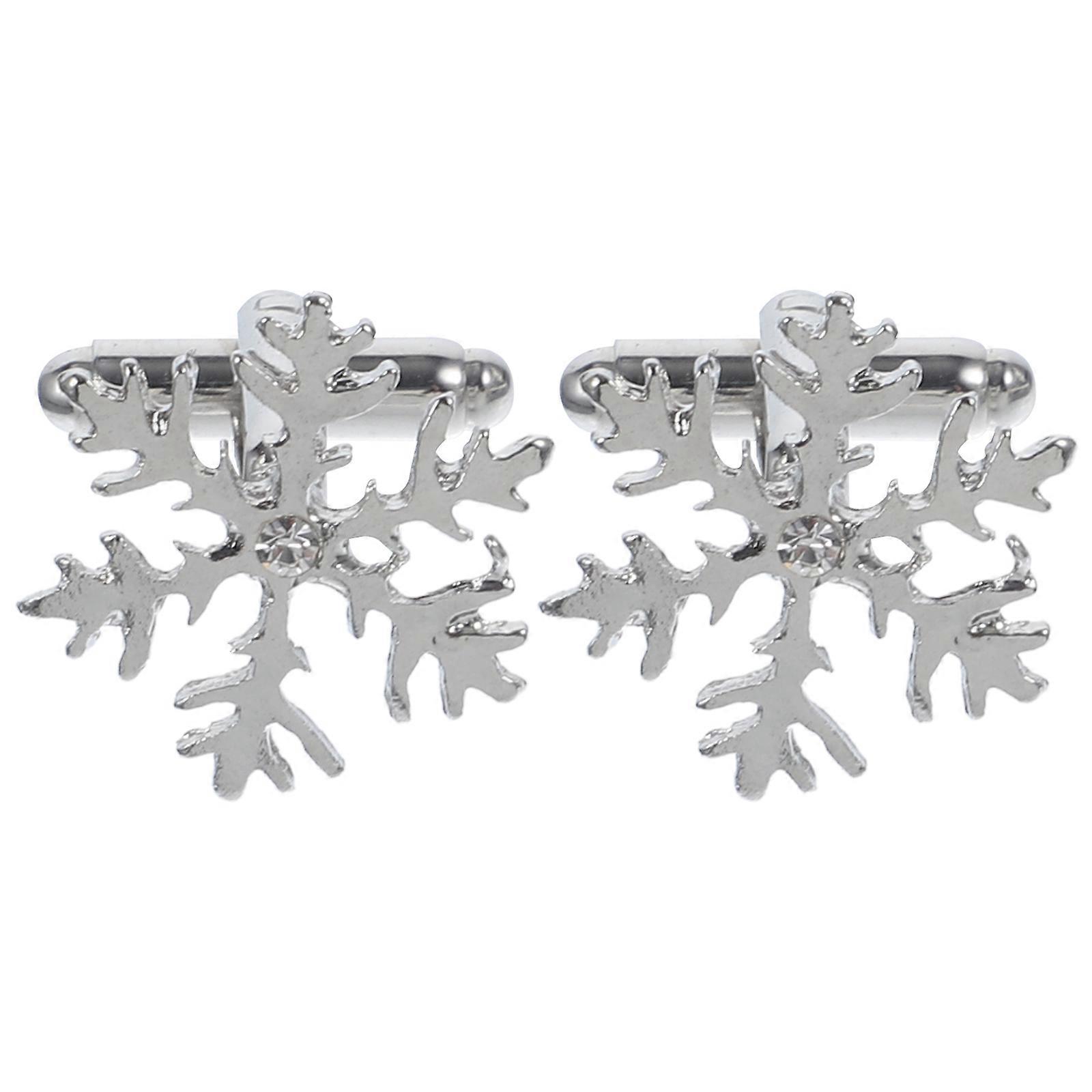 Pair of Snowflake Design Copper Cufflinks for Suit Shirt Jewelry Decoration Christmas Birthday Favor Gift (Silver)