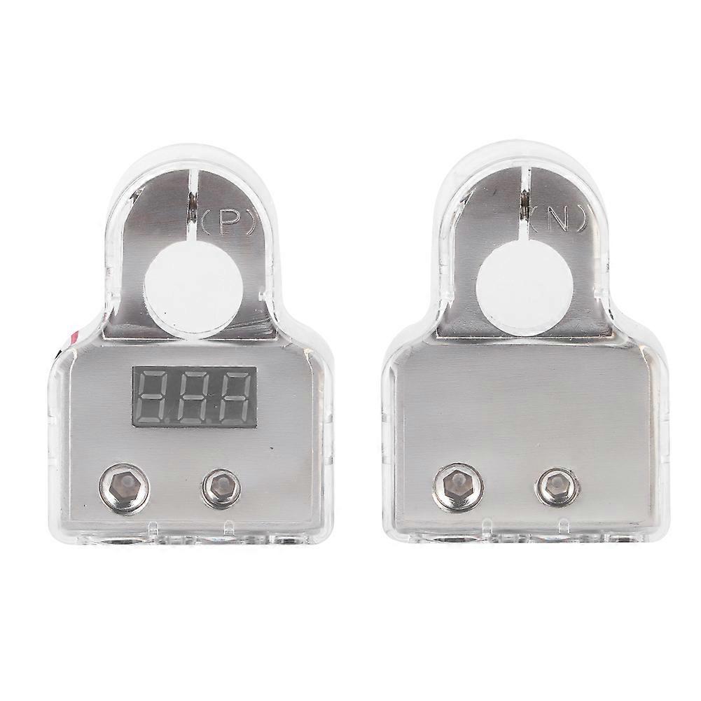 Pair 0/4/8 AWG Battery Terminal Connectors with Voltmeter Battery Post Clamp for Car Caravan Marine Boat Motorhome