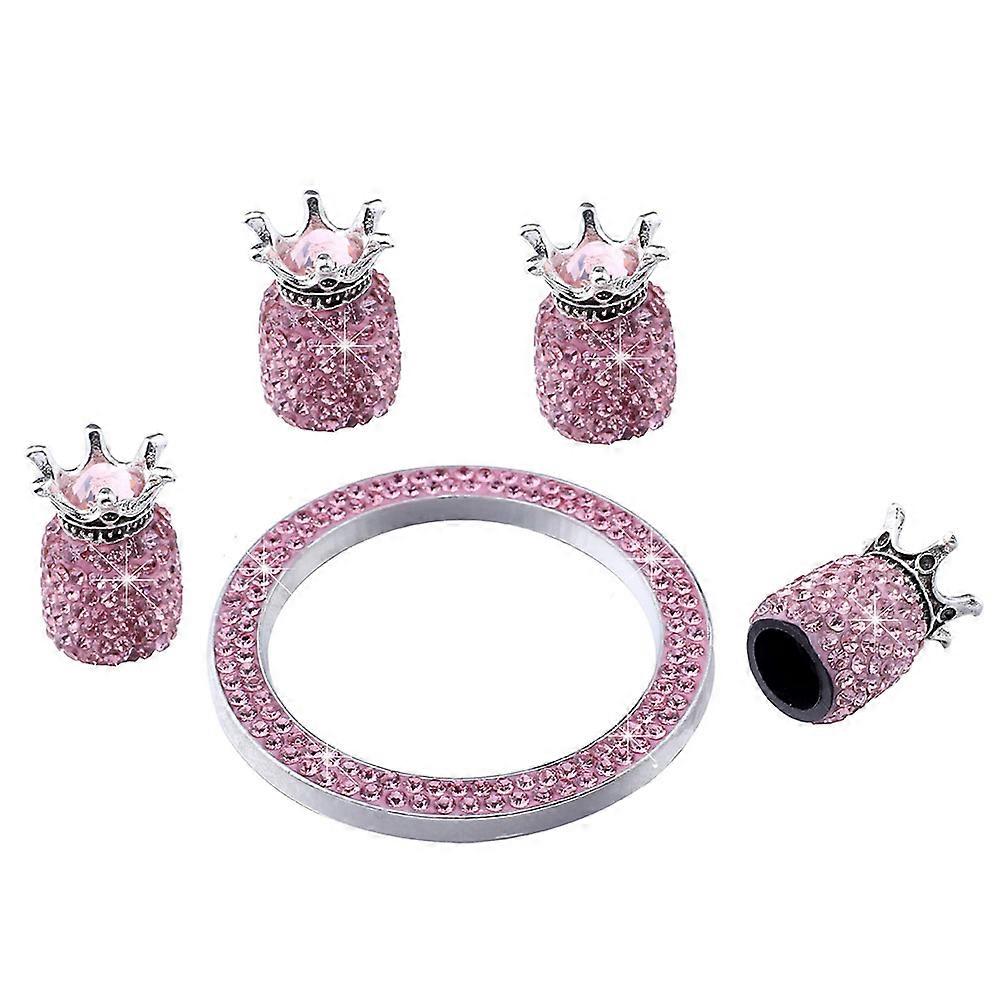 Crown Decorations Car Engine Start Stop Decoration Ring Extend Tire Life Pink 5Pcs