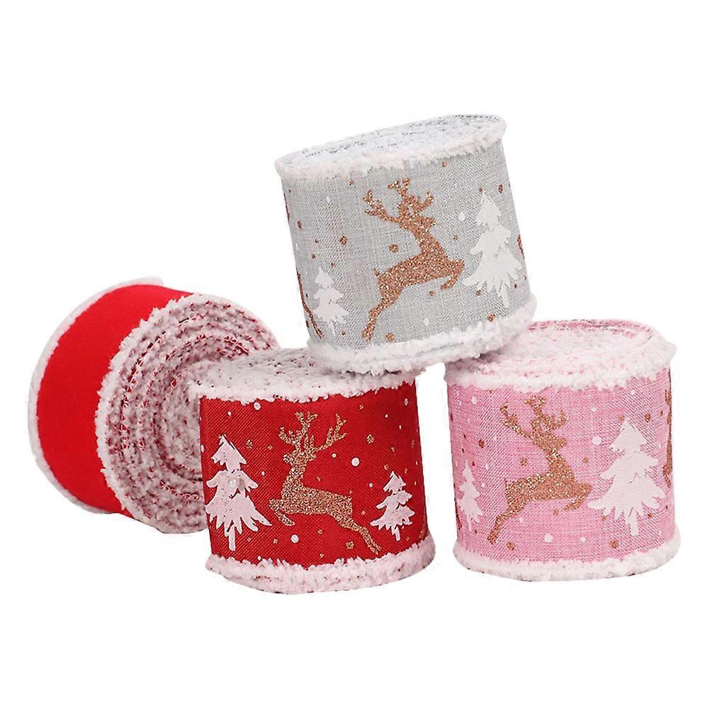 Sewing Decorations Christmas Themed Cloth Webbing Bow Knot Decorative Ribbons For Diy Craft 4 Rolls 200x7cm