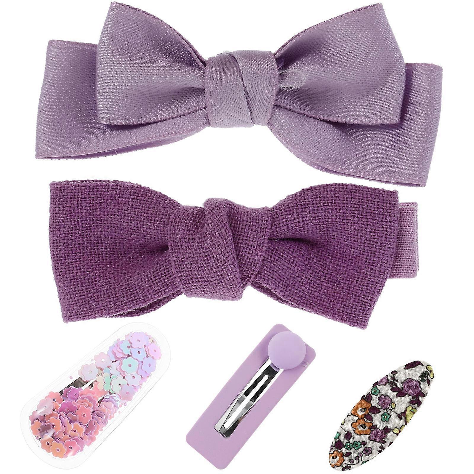Hair Decorations For Girls Decorative Hair Clips Set Cute Design For Kids Purple Bow Shape Fashion Accessory 5Pcs
