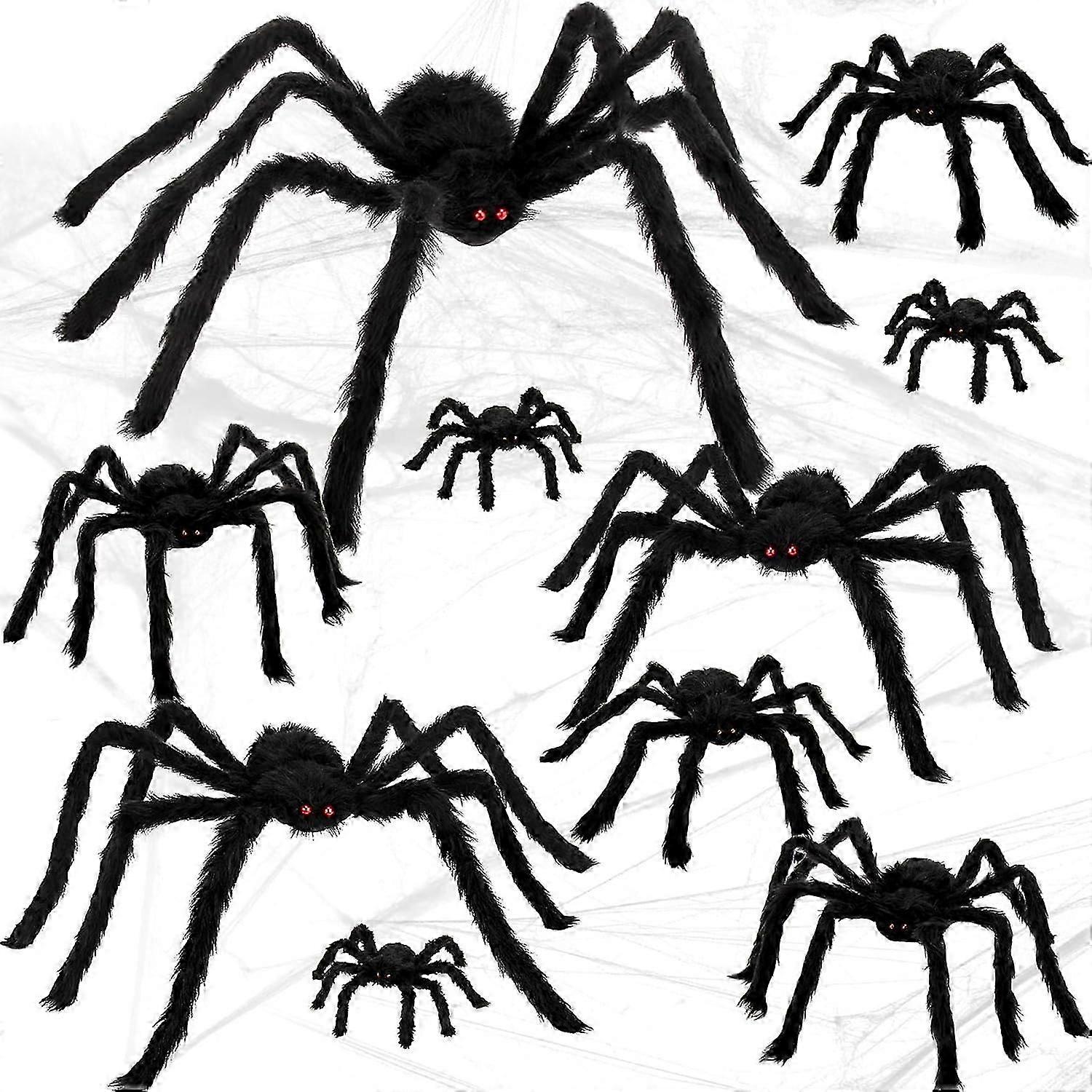 Halloween Spider Decorations, 10 Pcs Assorted Sizes Spiders Outdoor Halloween Decorations Realistic Large Hairy Scary Spider Props For Indoor, Home, Y