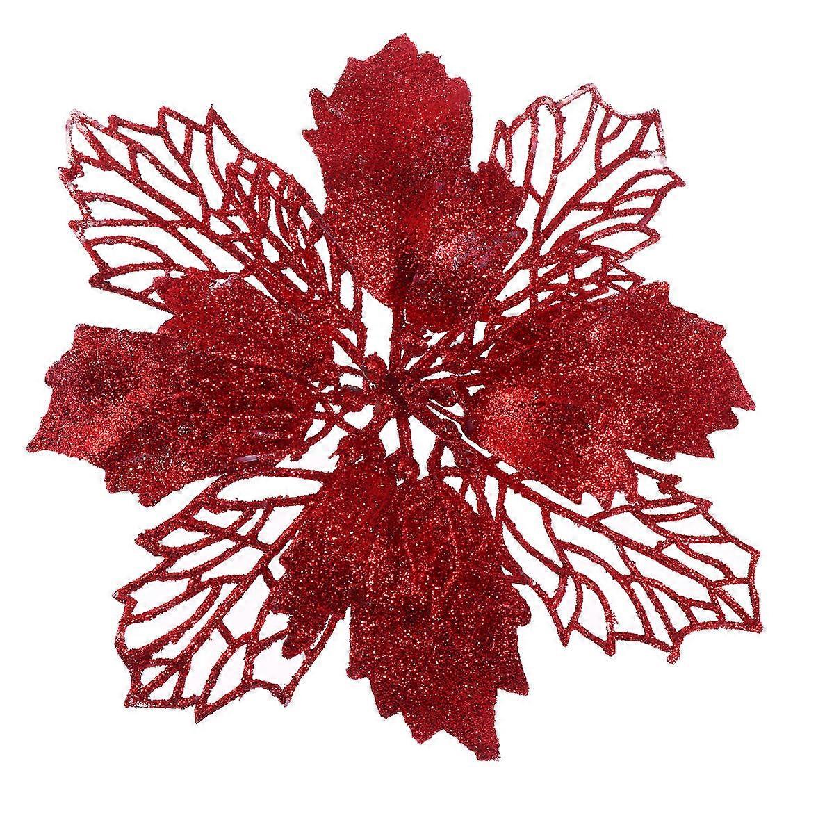 Christmas Glitter Flower Decorations 6Pcs 16 x 16 x 3cm Red