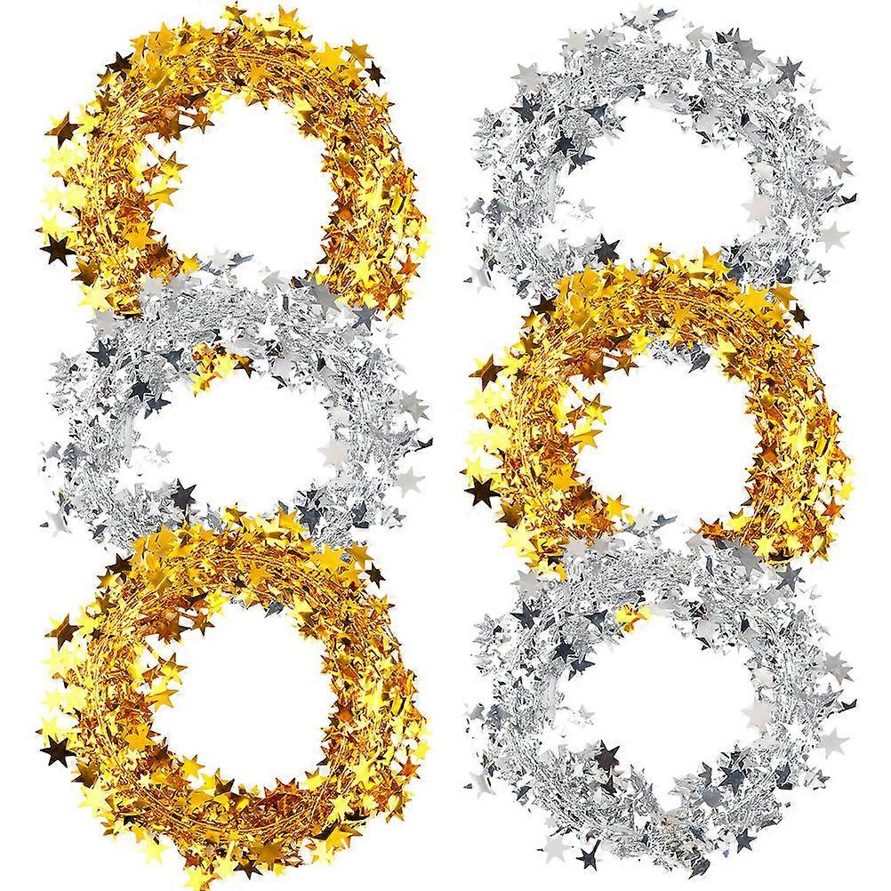 Star Hanging Garland Tinsel Decorations Silver Christmas Style 750.00X15.00X0.50cm 6Pcs