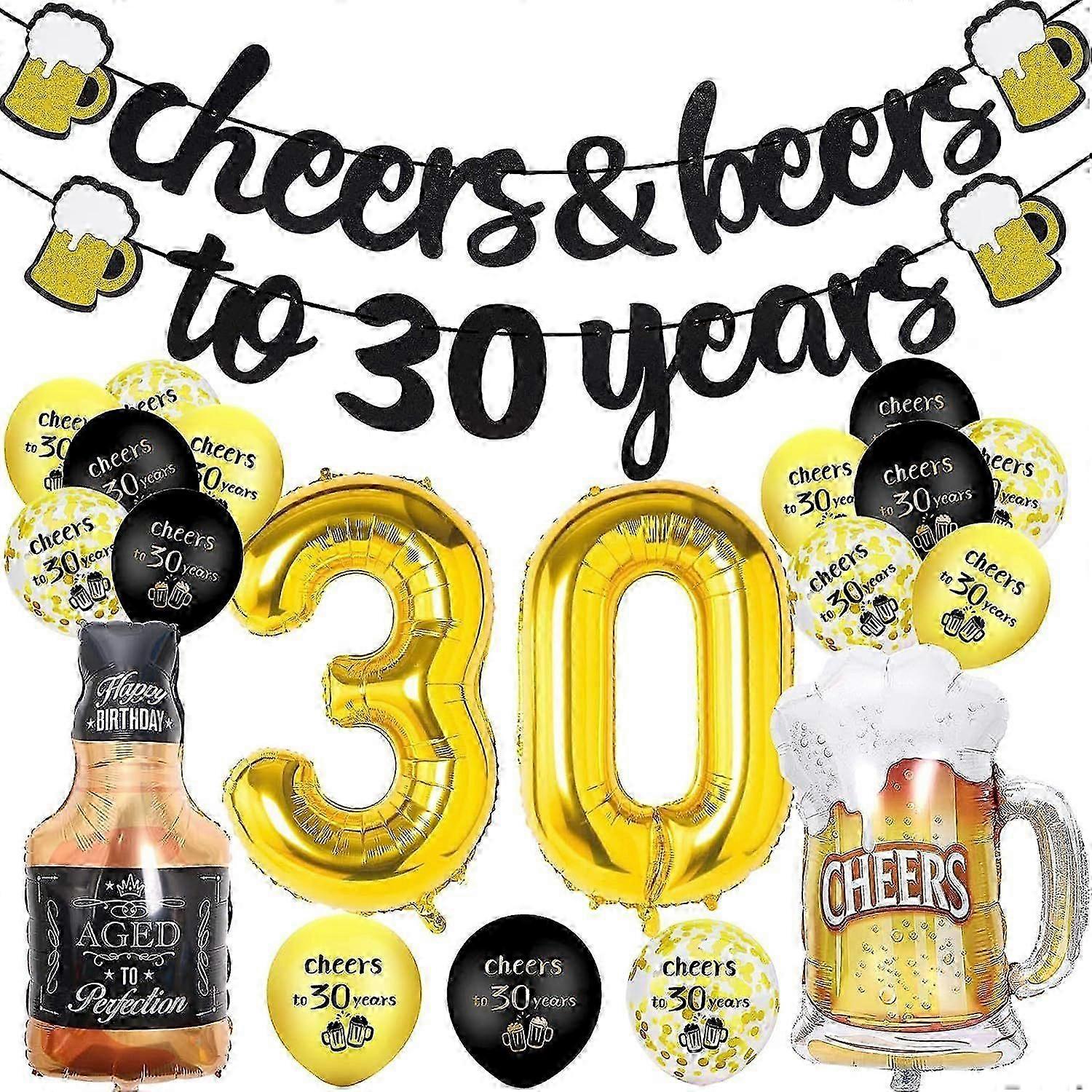 30th/40th/50th/60th Birthday Decorations for Men, Black Gold Happy Birthday Party Decorations - Birthday Banner, Latex Balloon and Foil Balloons