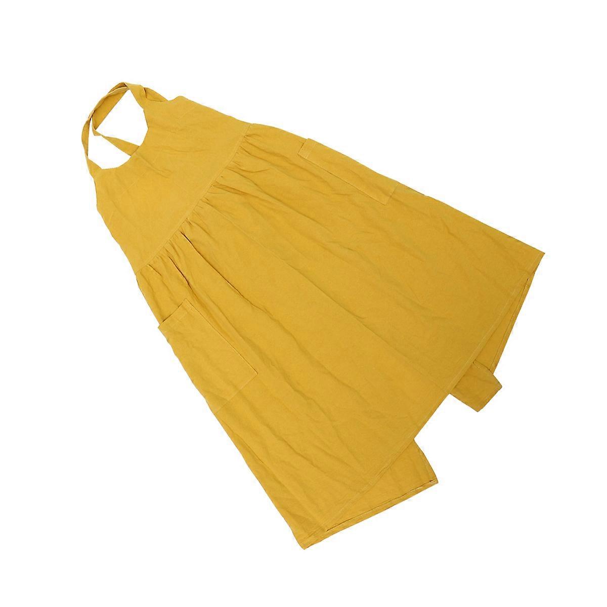 Baking Apron Cotton And Linen Tall Waist Long Apron For Flower Shop Use Yellow 82 X 110 X 0.2 Cm Oil Proof 1Pack