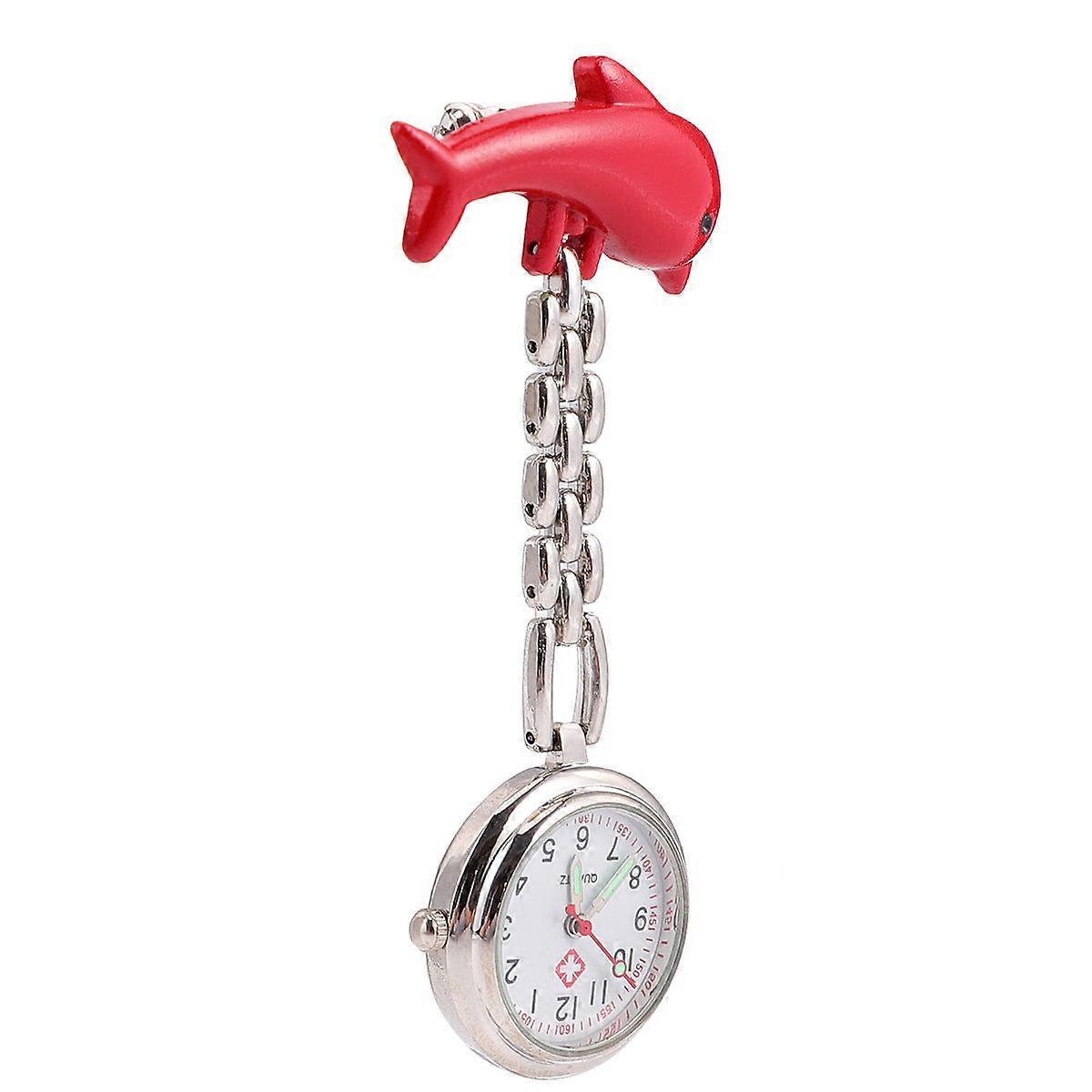 Medical Chest Watch for Nurses & Doctors – Zinc Alloy Fob Watch with Unique Buckle Design, Red Dolphin Style