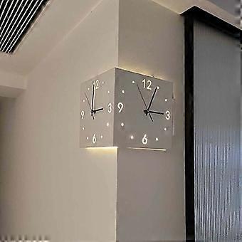 Double-Sided Wall Clock with Horn, Illuminated Sensor Corner Wall Clock, with Silent Battery-Powered Wall Clock and Digital Scale for Bedroom, White K