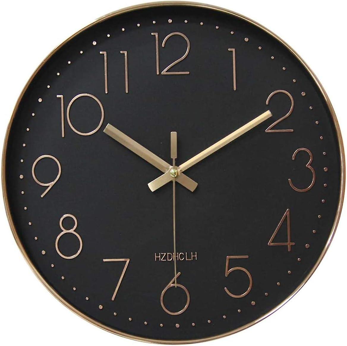 Wall Clock 12 Inch Silent Non Ticking Clock for Living Room Bedroom Kitchen Office (Black Rose Gold)