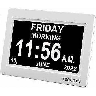 White 7 Inch Digital Clock with Date, Weekday, and Calendar Display