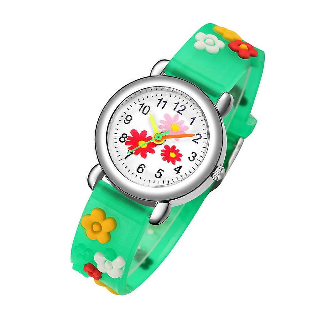 Adorable Student Watch with Pretty Cartoon Flower Prints for Kids Black Plastic Zinc Alloy