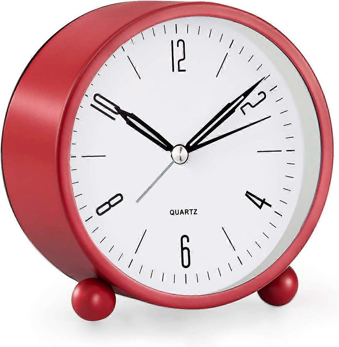 Analog Alarm Clock, 4 inch Super Silent Non Ticking Small Clock with Night Light, Battery Operated, Simply Design, for Bedroon, Bedside, Desk, (Red)