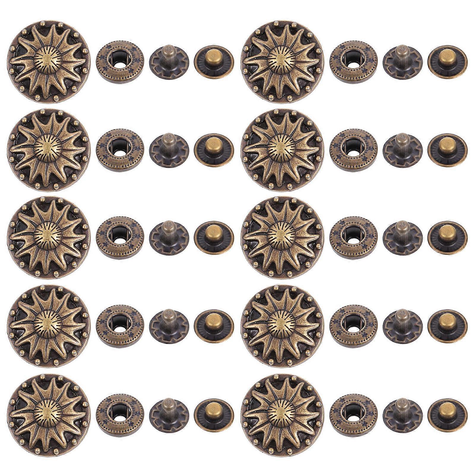 Zinc Alloy Snap Fastener for Sewing Dark Brown Retro Buttons with Craftsmanship 20 Sets