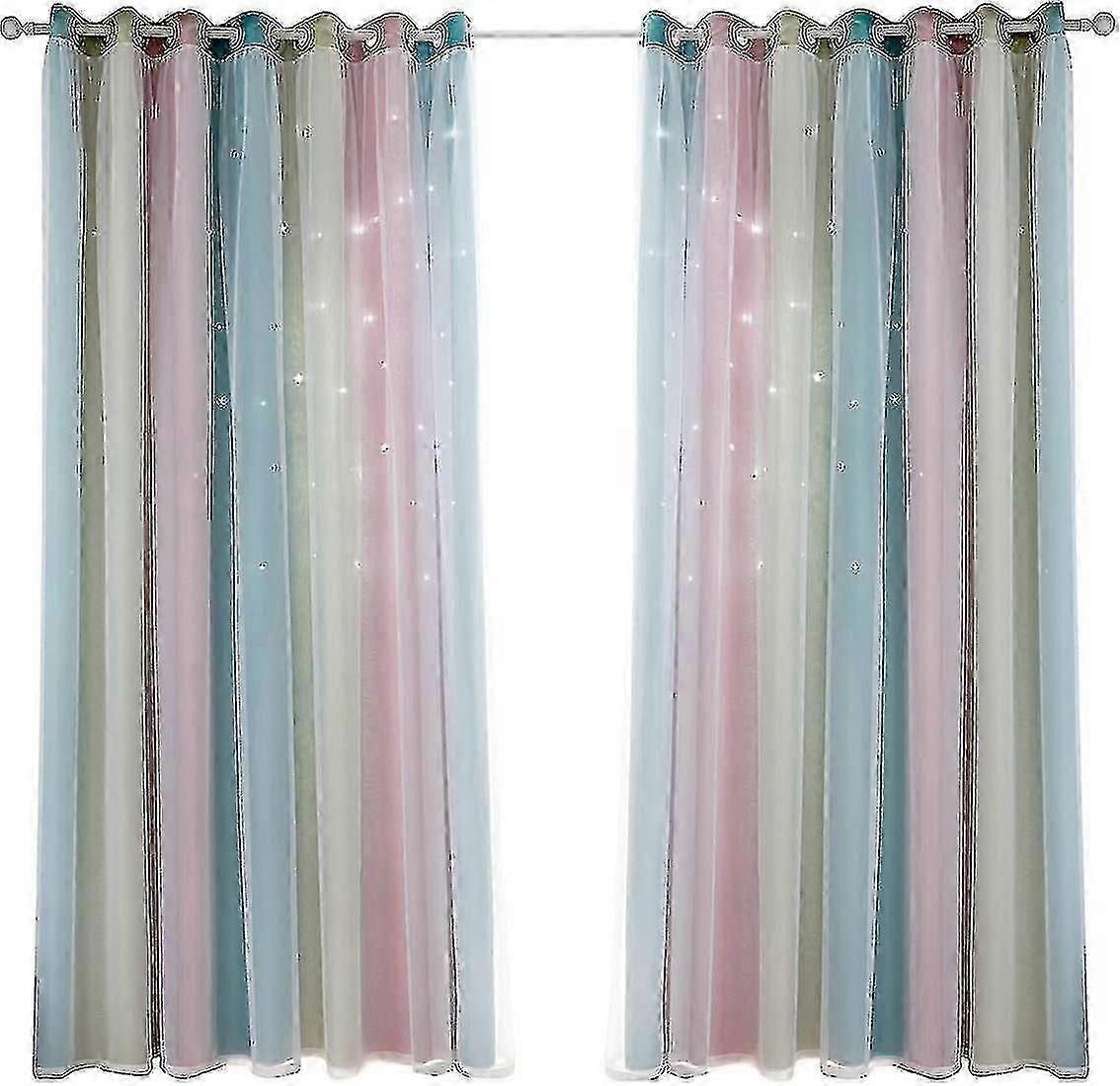Star Pattern Blackout Curtains for Kids Bedroom Decor, Double Layer Hollow Design with Voile & Light Filtering
