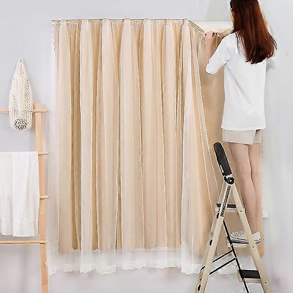 Simple Solid Color No-Punch Blackout Curtains, Paste Type, Living Room Bedroom Beige 150cmx200cm