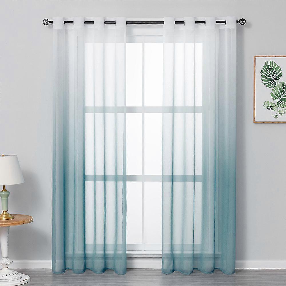 Semi Sheer Curtains - Faux Linen Green Voile Curtains, 2 Panels, Rod Pocket Gradient Sheer Curtains for Bedroom