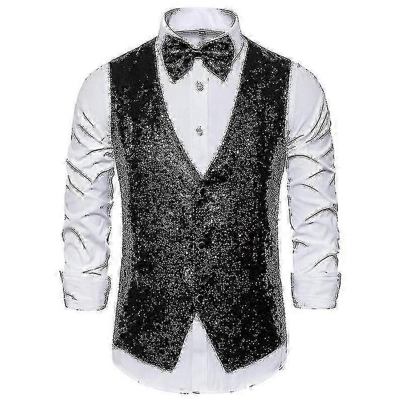 Men's Slim Fit Sequins Vest, V Neck Shiny Waistcoat