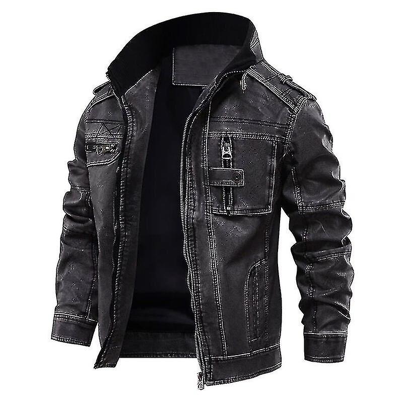 Leather Men's Jacket Winter Warm Moto Outerwear European Size