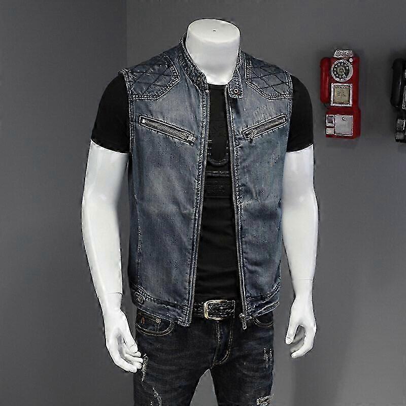 Calm Shoulder Denim Vest For Men+fattened Oversized Motorcycle Harley Stand Collar Denim Vest+fashion