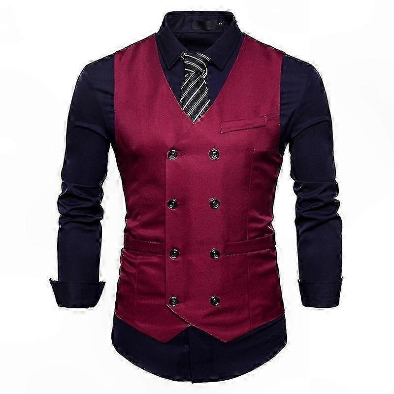 Men's Slim Fit Double Breasted V-Neck Formal Vest for Wedding and Business Attire