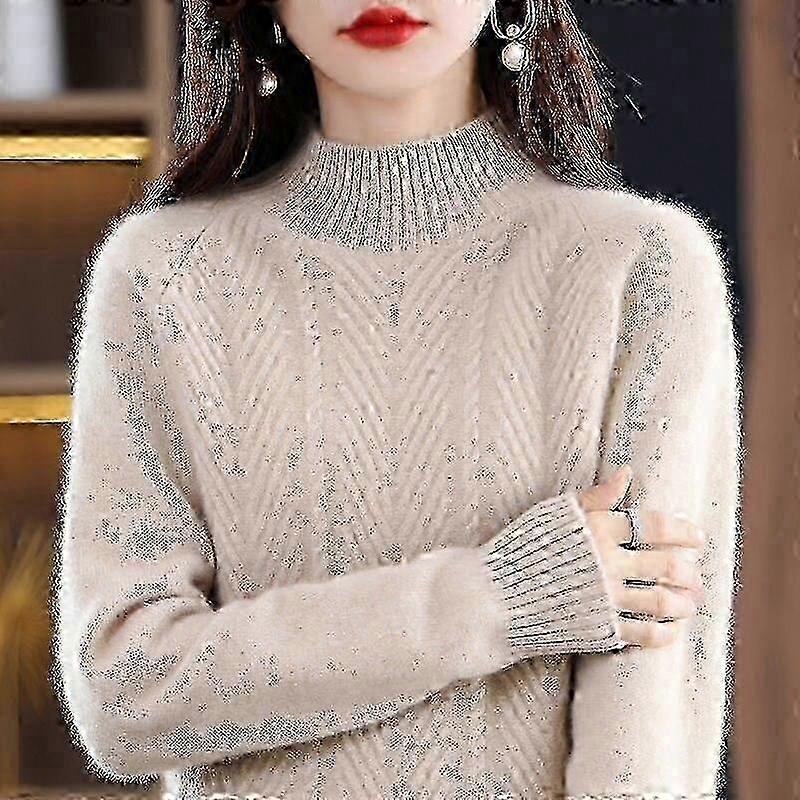 Pure Cashmere Sweater Pullover Women Autumn and Winter Half High Collar Solid Casual Long Sleeve Knitting Bottoming Sweater Top