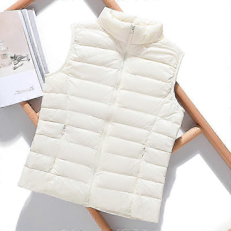 Lightweight Solid Color Women's Down Vest with Standing Collar - 90% White Duck Down Short Jacket for Comfortable Warmth
