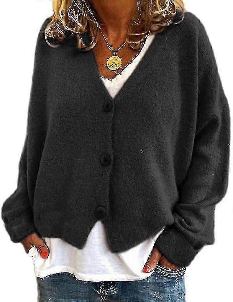 Womens Sweater Knitted Casual V-neck Solid Color Cardigan Sweater S202412303198