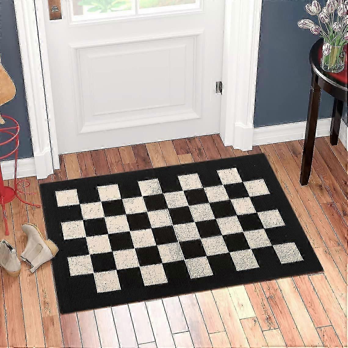 Indoor Doormat Front Door Carpet, 50cm X 80cm Non Slip Washable Checkered Bibulous Entrance Carpet, Black