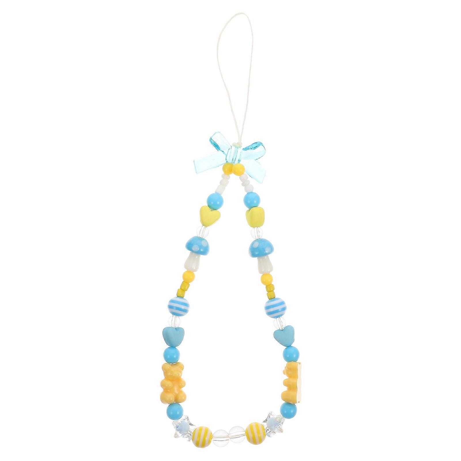 Cute Beaded Phone Charm with Mushroom and Bear Bow Design – Lightweight Wrist Strap for DIY Lovers